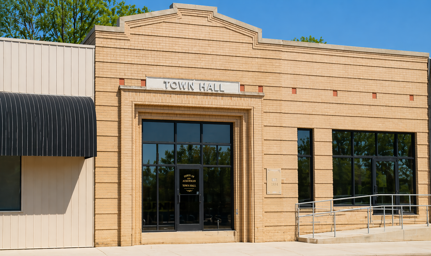 The Town of Ackerman was chartered on February 16, 1884, upon the arrival of the Canton, Aberdeen and Nashville Railroad.